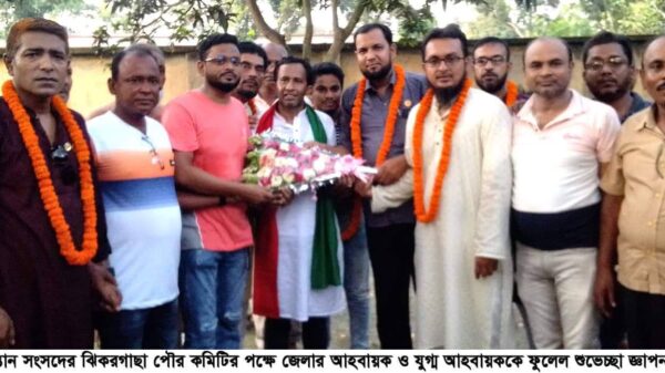 মুক্তিযোদ্ধা সন্তান সংসদের ঝিকরগাছা পৌর কমিটির সভাপতি সবুজ ও সম্পাদক তুলি।