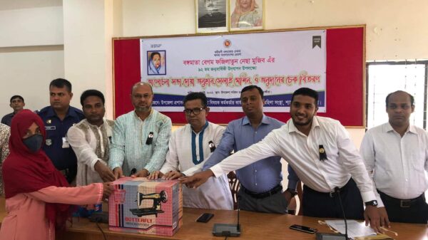 শ্যামনগরে পলিথিনের বিকল্প পাটের ব্যাগ বিতরণ।