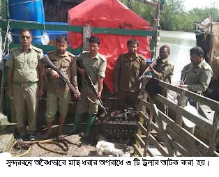 সুন্দরবনের অভয়ারণ্যে অবৈধভাবে মাছ ধরার অপরাধে ৩ টি ট্রলার আটক।