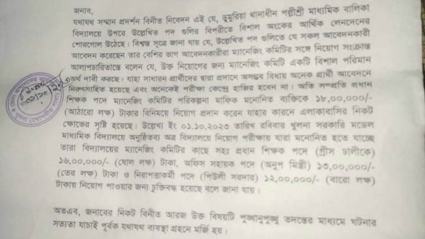 ডুমুরিয়ার পল্লী শ্রী বালিকা বিদ্যালয়ে ৪০ লাখ টাকার বাণিজ্য!