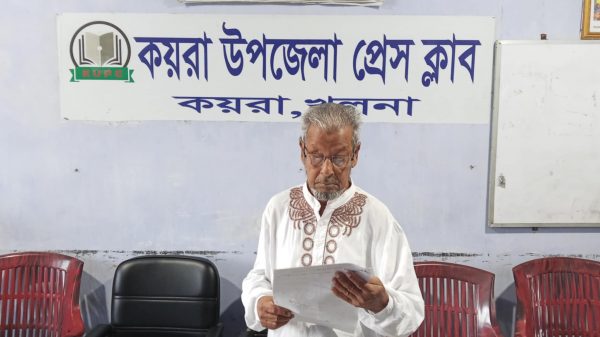 কয়রায় রেকর্ডীয় সম্পত্তি জবরদখল ও ডিসিআর জালিয়াতির প্রতিবাদে সংবাদ সম্মেলন।
