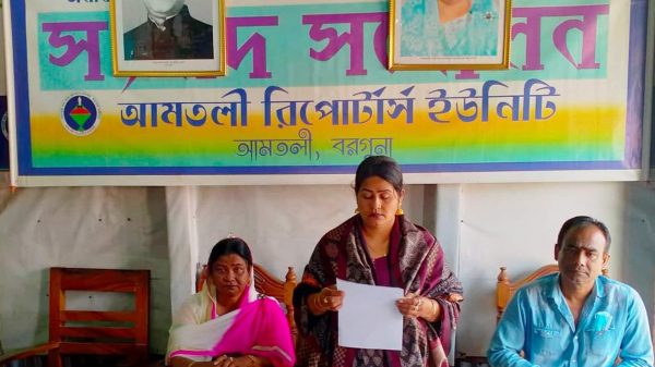 জমি চাষাবাদে বাঁধা, আমতলীতে দুই ইউপি চেয়ারম্যান কন্যার সংবাদ সম্মেলন।