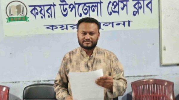 কয়রায় মিথ্যা অপপ্রচারের প্রতিবাদে ইউপি সদস্য আবু হাসানের সংবাদ সম্মেলন।