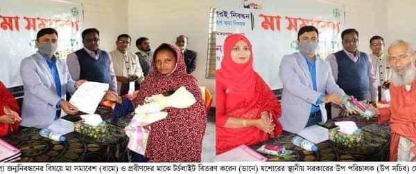 ঝিকরগাছায় বিনামূল্যে জন্মনিবন্ধনের বিষয়ে মা সমাবেশ ও প্রবীণদের মাঝে টর্চলাইট বিতরণ