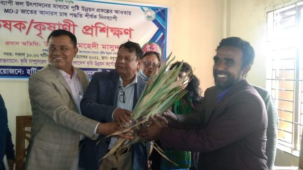 মধুপুরে ফিলিপাইন থেকে আমদানি করা আনারসের চারা বিতরণ