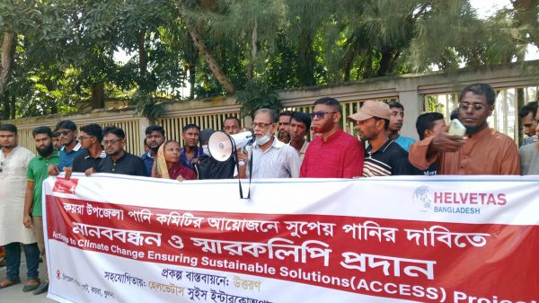 কয়রায় সুপেয় পানির দাবীতে মানববন্ধন ও স্বারকলিপি প্রদান ।