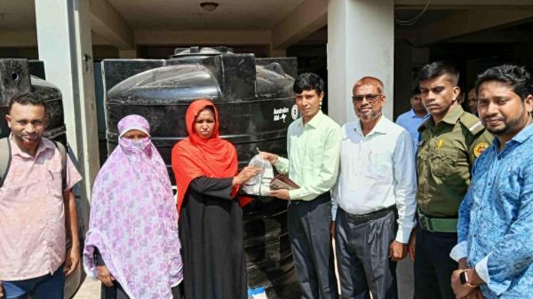 কয়রায় সুপেয় পানির আধার ট্যাংকি বিতরণ ।
