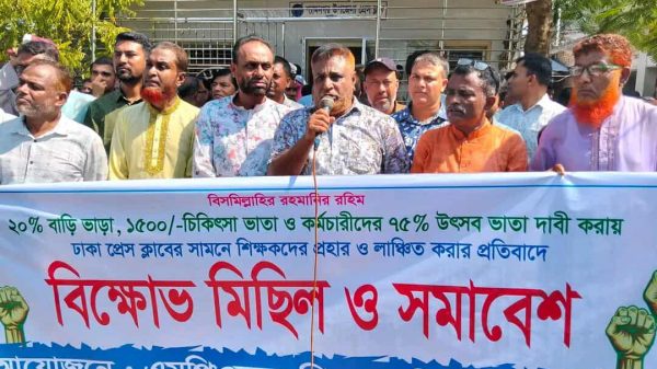 শ্যামনগরে এমপিওভুক্ত শিক্ষা প্রতিষ্ঠান ঐক্যজোটের বিক্ষোভ মিছিল ও সমাবেশ