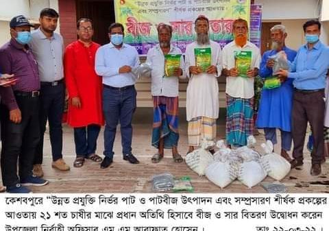 কেশবপুরে ২১ শত চাষীর মাঝে পাট বীজ ও সার বিতরণ উদ্বোধন।