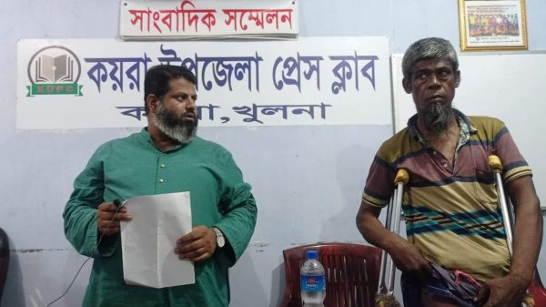 কয়রায় ইউপি চেয়ারম্যানের সংবাদ সম্মেলন।